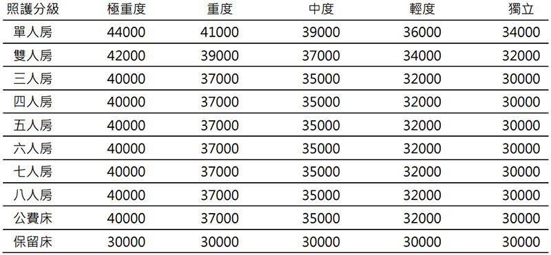 - 基本照護費30000元/月